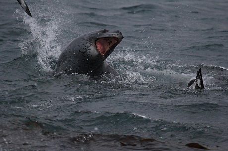 A leopard seal hunting in the Antarctic. Credit: James Robbins