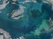 A couple of factors determine ocean color: the water itself, and the stuff it contains. Water molecules absorb redder wavelengths of light and reflect bluer wavelengths, making water look blue.
